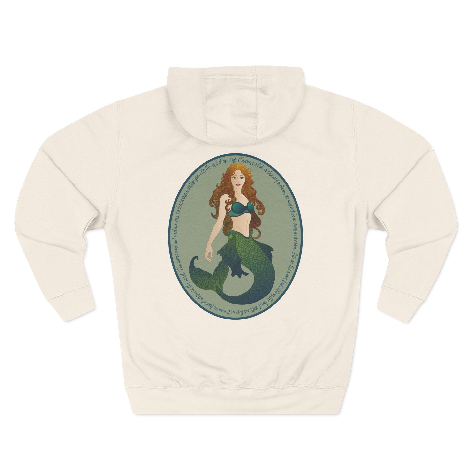 This medium-weight fleece hoodie wraps you in quiet comfort and ocean-side daydreams. The charcoal fabric feels soft against the skin, with a sturdy hood and drawstrings that settle into place. A roomy kangaroo pocket keeps hands warm or stashes small treasures. On the back, a richly colored mermaid portrait in vintage oval framing turns the hoodie into wearable art—subtle, story-driven, and easy to layer. The construction is built to last: reinforced seams, premium ring-spun cotton blend, and low shrinkage for reliable fit. Wear it on cool evenings, at seaside markets, or while curled up with a book—each glance at the design brings a little tide-swept calm.