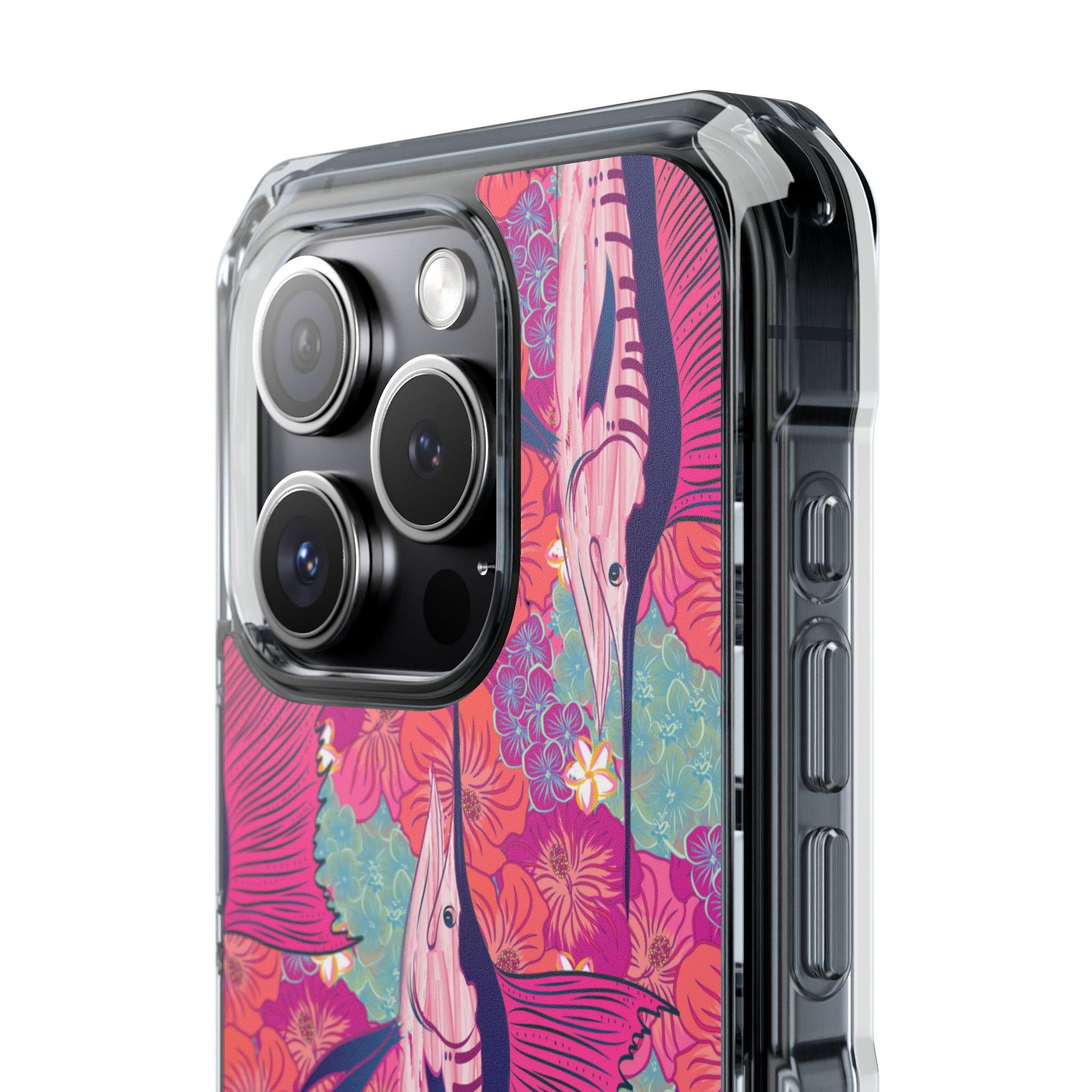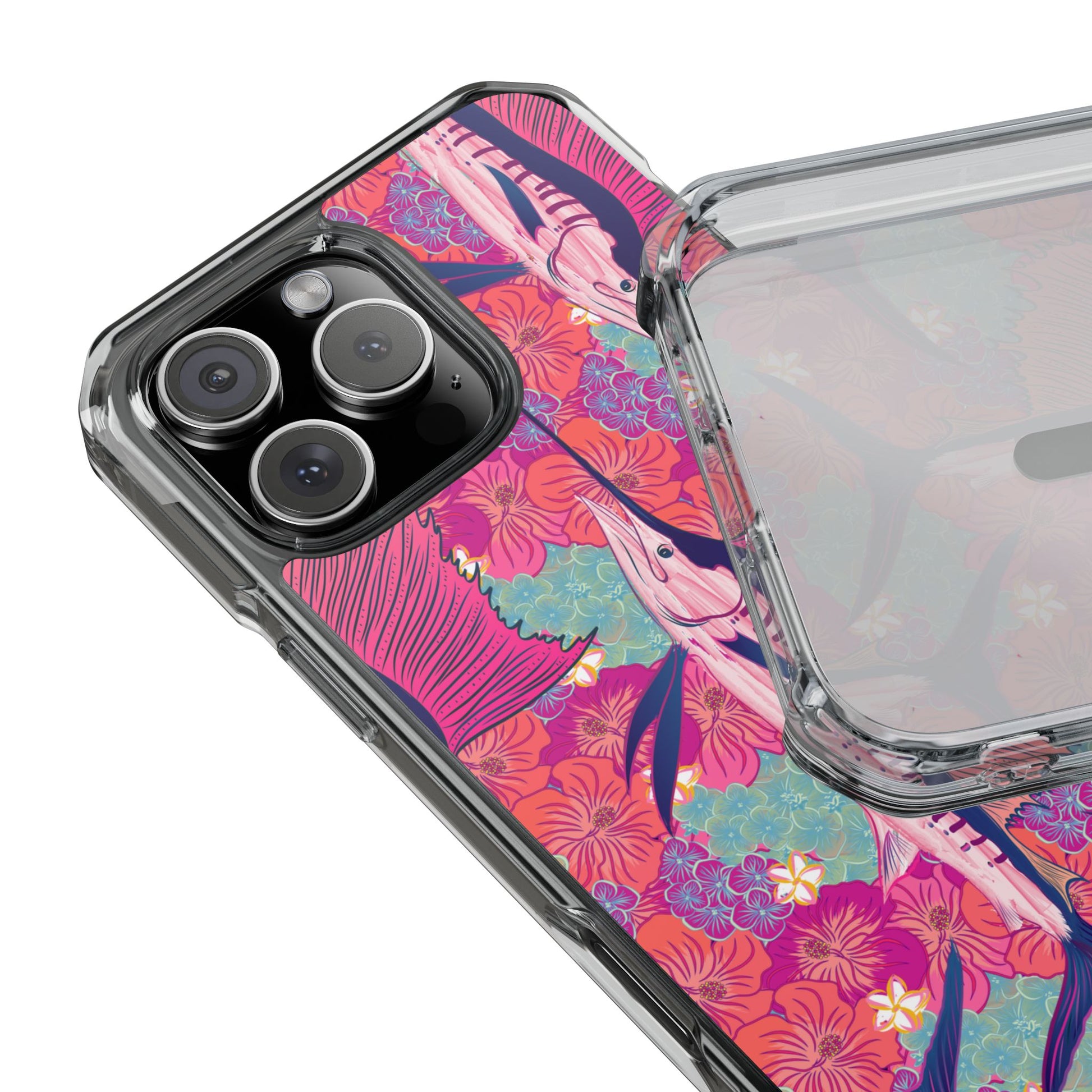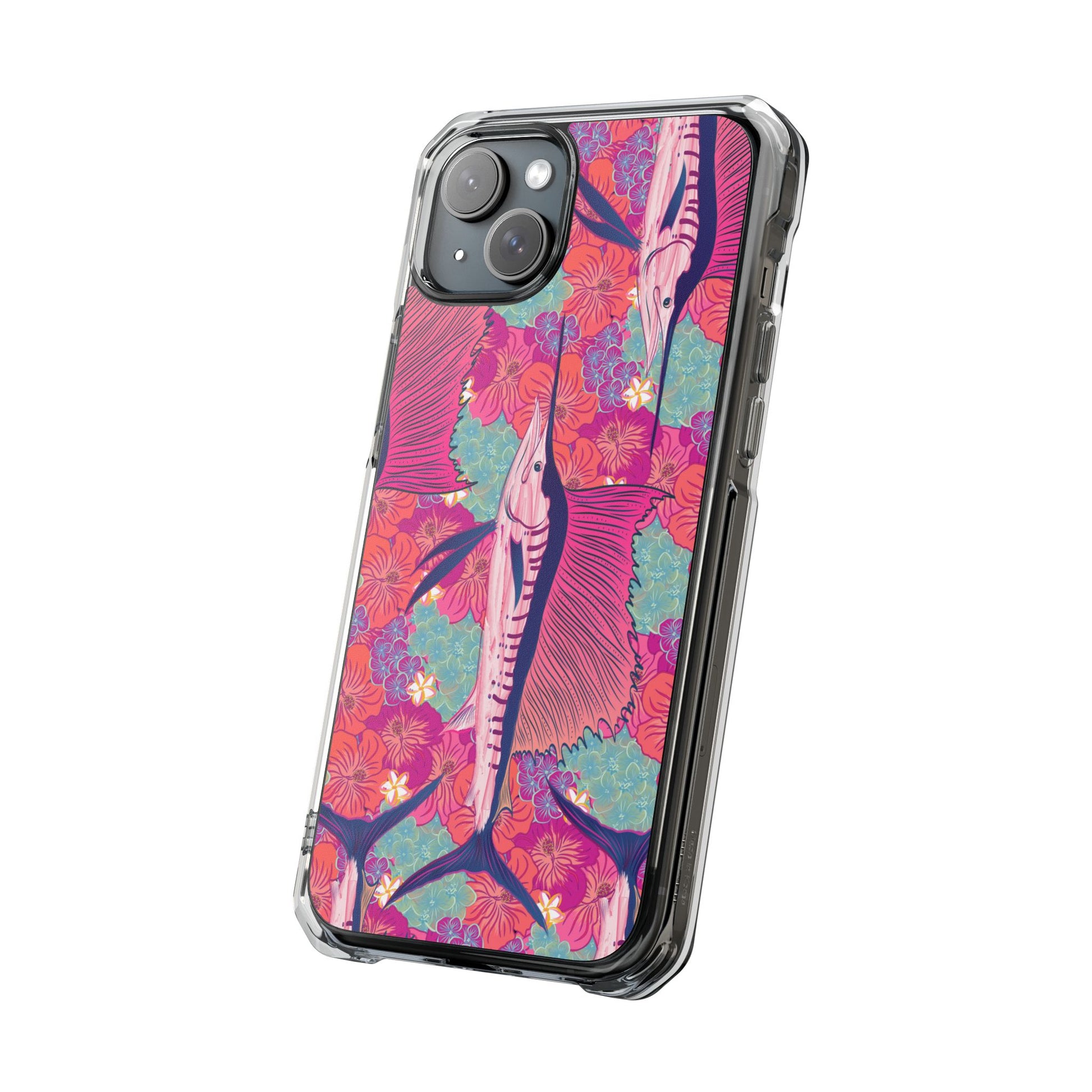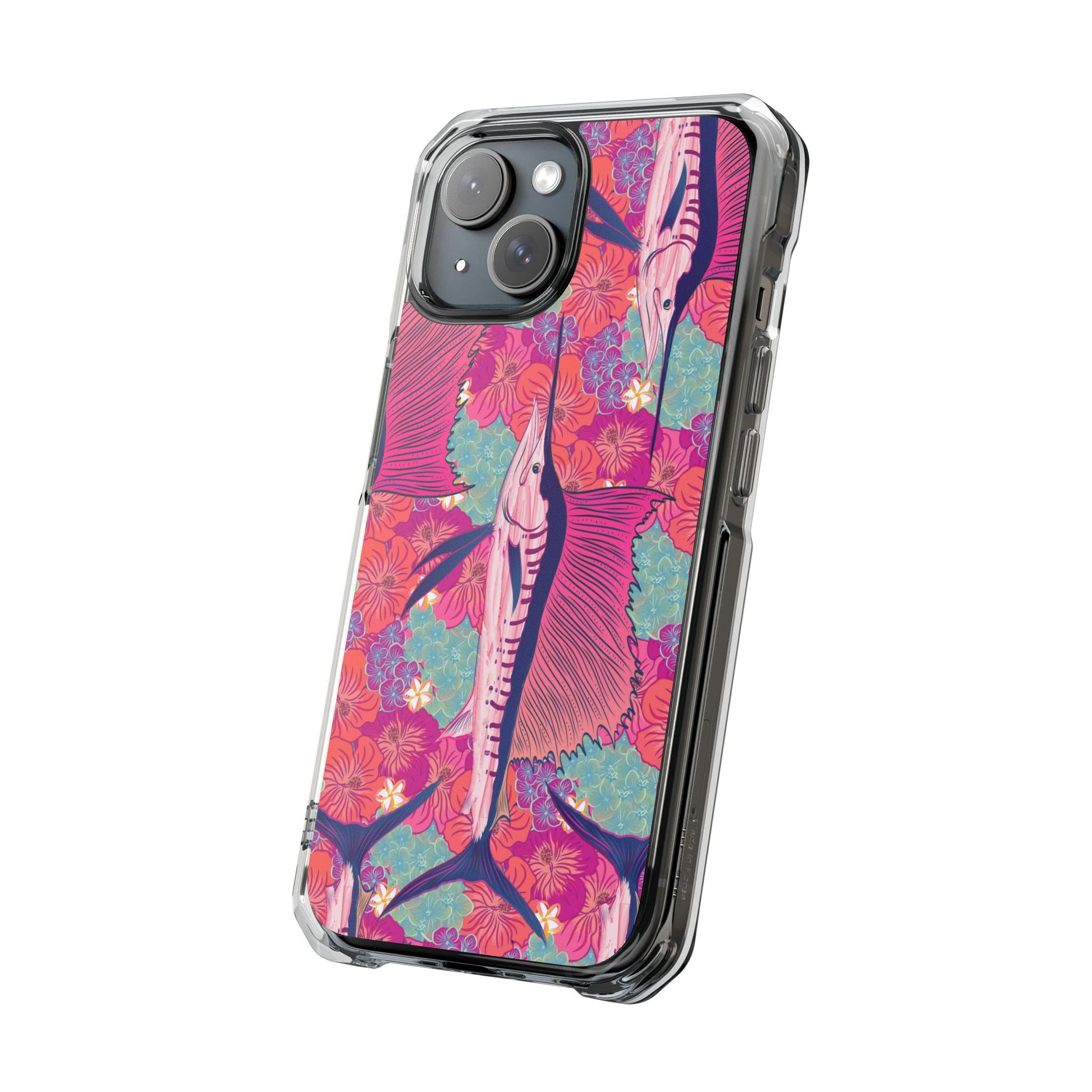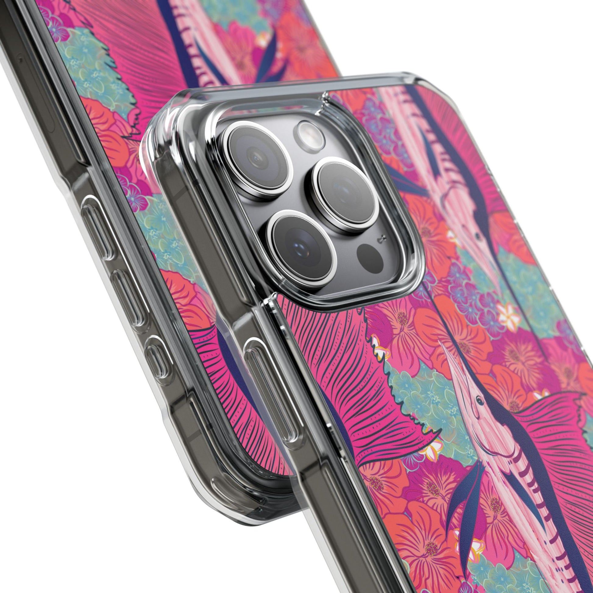 Watercolor pink sailfish over hibiscus Magnetic Clear Impact Cases