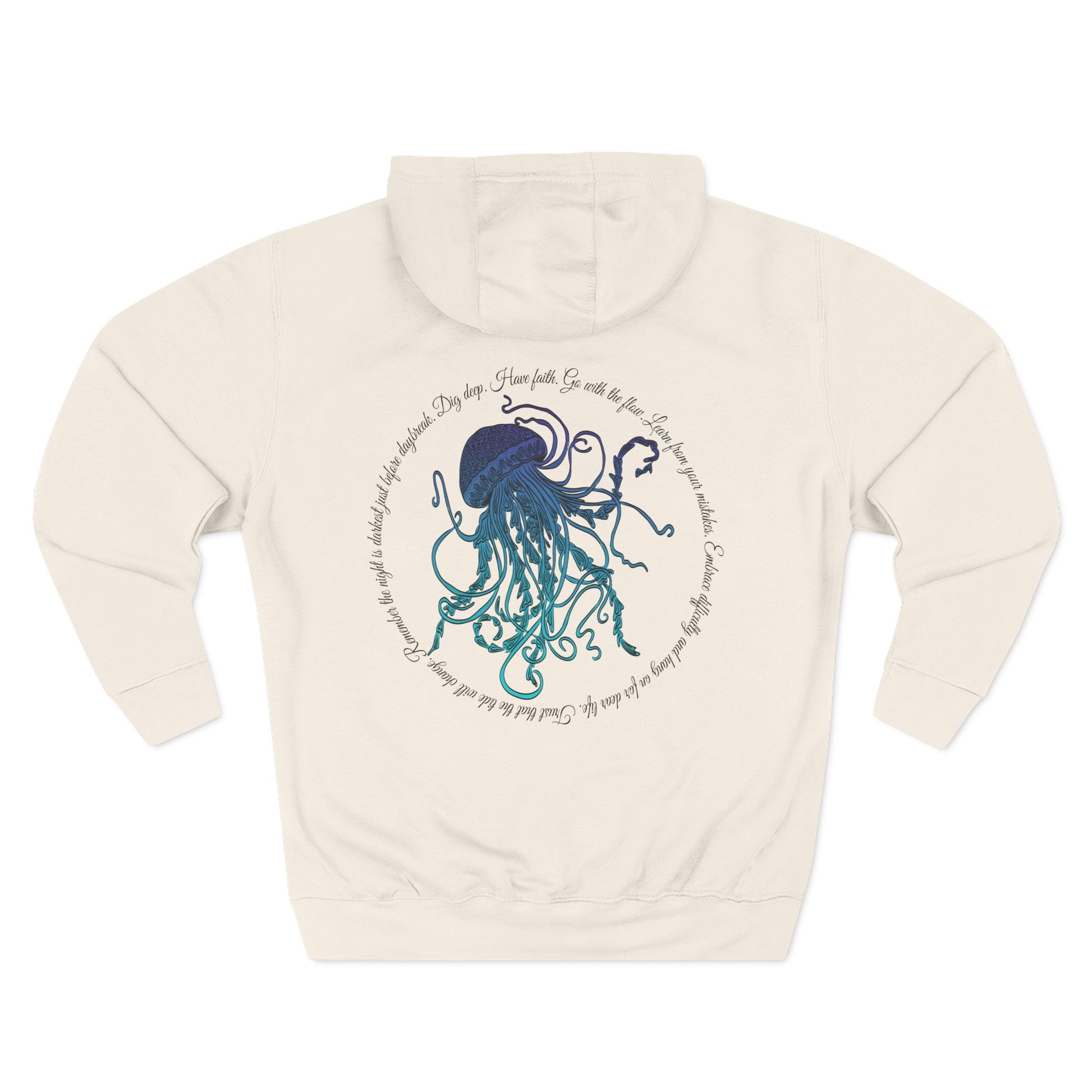 Embrace the ocean's beauty with this stunning Three-Panel Fleece Hoodie, perfect for casual outings or cozy nights in. Featuring a captivating jellyfish design on the back, this hoodie radiates a relaxed and artistic vibe that speaks to nature lovers and ocean enthusiasts alike. Whether you're lounging at home, heading to the beach, or participating in outdoor activities, this hoodie will keep you warm and stylish. Ideal for gifting during holidays, birthdays, or as part of a thoughtful surprise for your friends and family who appreciate unique, ocean-themed apparel.